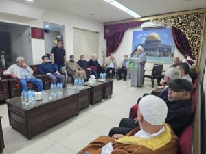 حيث افتتح اللقاء بكلمة لسماحة الشيخ ماهر حمود، وتلاها كلمات ابرزها للحاج ابو احمد فضل عن حركة حماس، الشيخ غازي حنينه عن تجمع العلماء المسلمين، والدكتور بسام حمود عن الجماعة الإسلامية عدد من السادة العلماء.