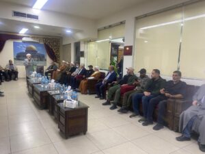 والسادة العلماء: الشيخ حسام العيلاني، الشيخ خضر الكبش، الشيخ عادل التركي، الشيخ حسن الابريق، الشيخ عبد الغني مستو، الشيخ نزار رباح والشيخ الاستاذ فيصل العوضي، وممثلين عن جمعية نور اليقين والاستاذ مصعب حيدر .