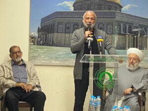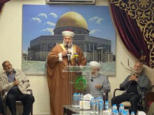لبى كثير من الفاعليات وممثلي الفصائل الفلسطينية والاحزاب اللبنانية، دعوة رئيس الاتحاد العالمي لعلماء المقاومة سماحة الشيخ ماهر حمود الى لقاء تضامني مع اهلنا في مخيم عين الحلوة.